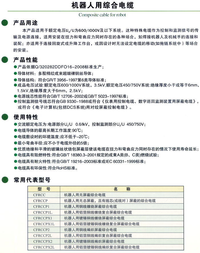 機器人用綜合電纜